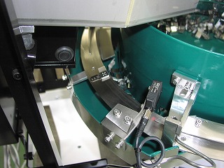 吊り選別終了後、センサーで出口部分を監視します。変形したワークが出口で詰まるのをエアーブローで防止します。