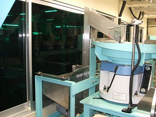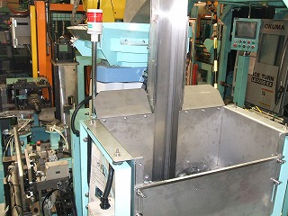 壁際の少ないスペースに設置し、更に低い位置から投入する為、シリンダーでワークを下から持ち上げます。